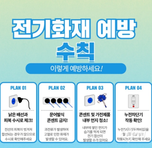 또한, 하나의 콘센트에 여러 전기기기를 동시에 사용하는 과부하를 피하는 것도 중요합니다.