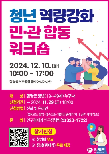 참가를 희망하는 청년은 이달 29일까지 함평군 홈페이지(함평군 홈페이지'함평소식'공지사항)에 기재된 QR코드를 활용하거나 전화로 신청하면 된다.