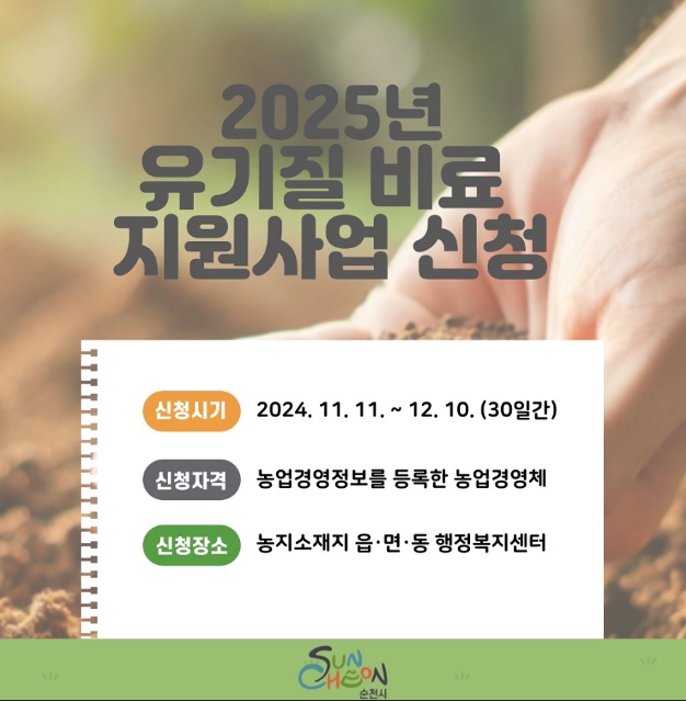 ![]() 2025년 유기질비료 지원사업 신청·접수 |