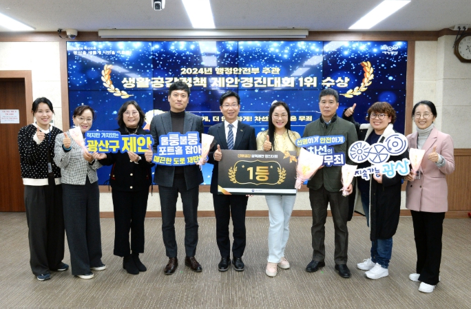 광산구는 ‘새로운 방식의 노면표시로 시인성 배가 및 예산 절감’은 높은 점수를 획득해 1위로 선정됐으며, ‘안전한 도로 환경을 위한 포트홀 개선’은 7위를 받았다.