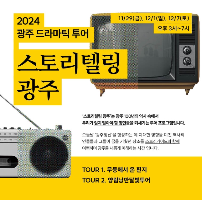 ‘스토리텔링 광주’는 광주만의 정체성과 자산을 활용한 관광상품화를 통해 지역 관광여건을 조성하는 사업으로, 광주시는 내년에도 지역 정체성과 자산을 활용한 다양한 관광상품을 출시해 운영할 계획이다.