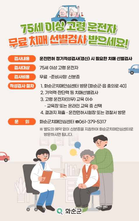 ![]() 75세 이상 고령운전자 치매선별검사 무료 지원 |