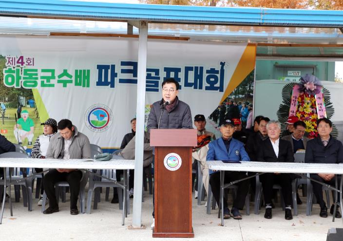 하승철 하동군수는 “현재 하동군파크골프협회 회원은 960여 명에 이르며, 그 수가 계속 증가하고 있다”며, “시니어 스포츠의 꽃으로 대중화되는 파크골프 동호인들이 모여 화합의 장을 마련할 수 있어 기쁘다”라고 말했다.
