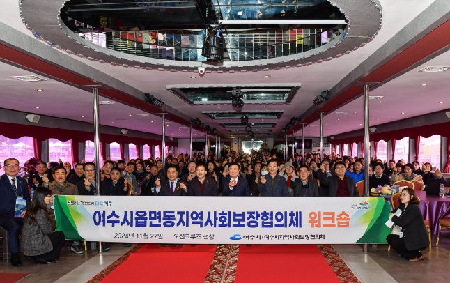 ![]() 지난 27일 여수오션크루즈에서 ‘읍면동 지역사회보장협의체 위원 역량강화 워크숍’을 개최했다. |