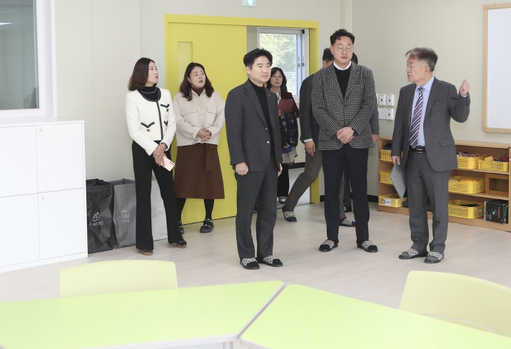 ![]() 김대중 교육감과 관계자들이 일로초 청망분교장의 ‘2030교실’을 둘러보고 있다. |