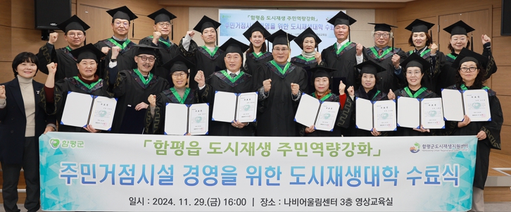 군은 이번 수료식을 계기로 도시재생사업의 성과를 확산시키며, 함평읍이 지역 발전의 한 축으로 자리 잡을 수 있도록 지속적으로 지원할 방침이다.