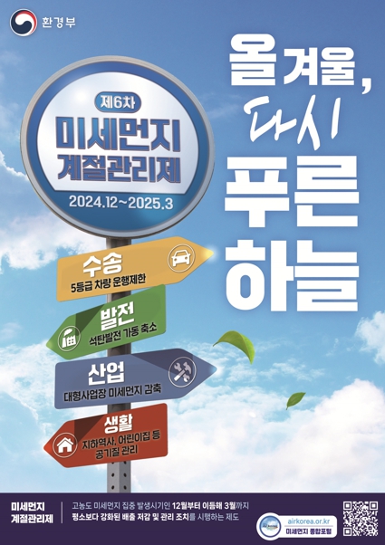 특히 계절관리제 시행 전(2018년 12월~2019년 3월)과 비교하면 제5차 계절관리제 시행 결과(2023년 12월~2024년 3월), 초미세먼지 농도는 33㎍/㎥에서 18.7㎍/㎥으로 낮아져 43% 줄어드는 성과를 거뒀다.