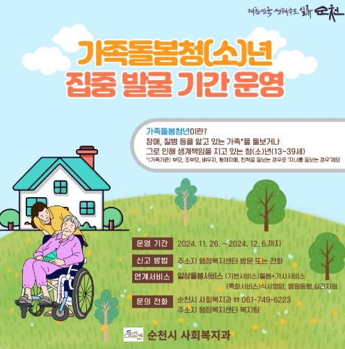 ![]() 순천시, ‘가족돌봄청(소)년 집중발굴’ 기간 운영 |