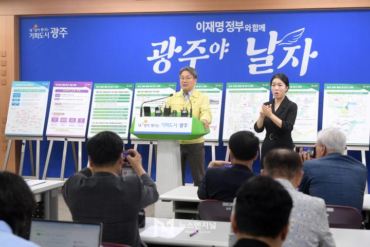 ![]() 강기정 광주광역시장이 4일 시청 브리핑실에서 5개 자치구와 함께 기자회견을 열고 ‘광주시민 생활안정을 위한 호우피해 복구 및 침수 예방 대책’을 발표하고 있다. /광주광역시 제공 |