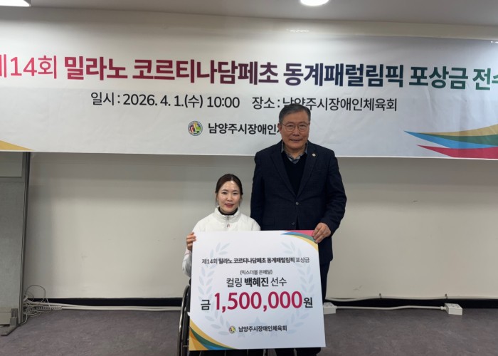 ![]() 남양주시장애인체육회, 제14회 밀라노-코르티나담페초 동계패럴림픽 은메달 백혜진 선수에게 포상금 전달 |