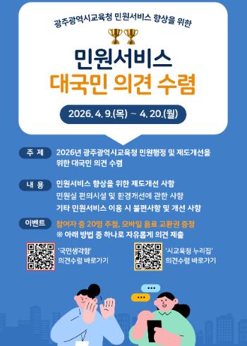 ![]() 광주광역시교육청, 민원서비스 품질 향상 국민 의견 수렴 |
