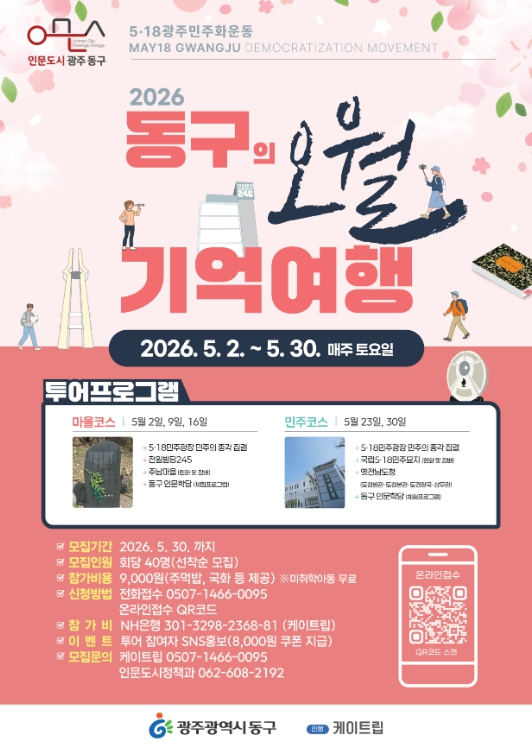 동구 관계자는 “이번 프로그램을 통해 5·18민주화운동의 의미를 널리 확산하고자 한다”며 “5·18 정신의 헌법 전문 수록 추진 등 시대적 흐름 속에서 오월 정신이 지역을 넘어 우리 사회 전반으로 공유·계승되는 계기가 되길 바란다”고 말했다.