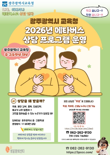 상담은 전문상담기관과 연계해 운영되며, 상담 과정에서 위기 징후가 발견될 경우 학교와 협력해 신속히 대응할 예정이다.