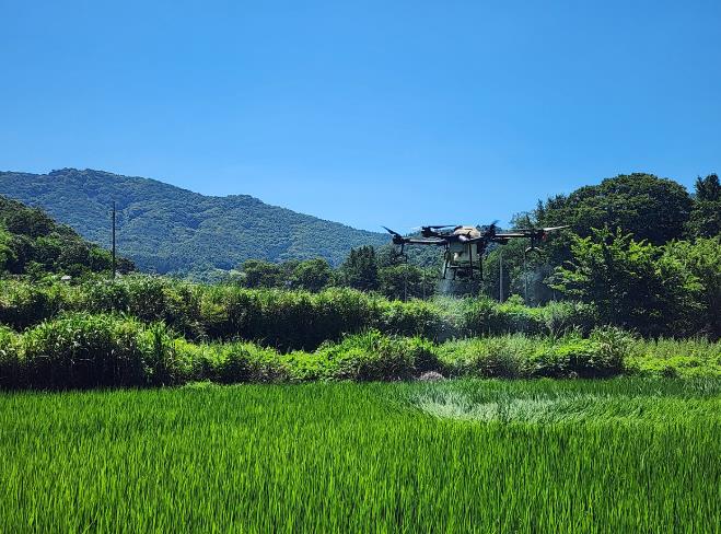 ![]() 드론을 이용해 항공방제를 하고 있다. |