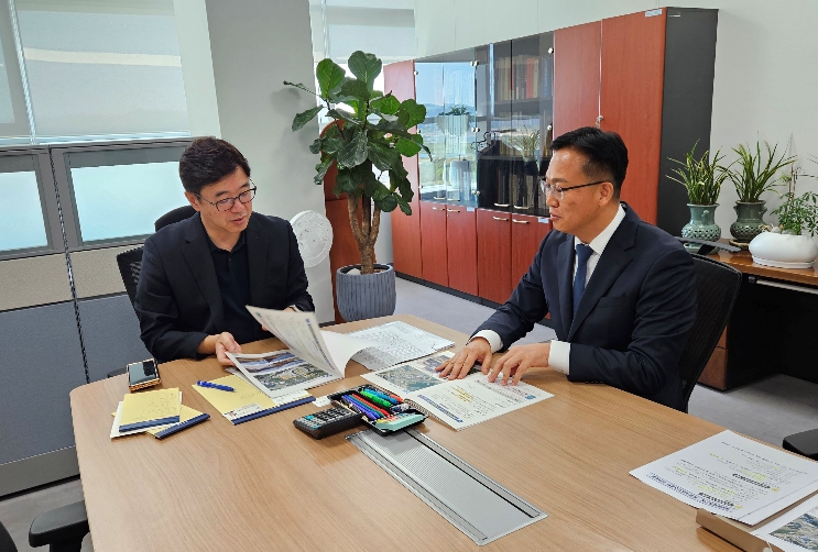 ![]() 조석훈 목포시장 권한대행(오른쪽)이 정종훈 행정안전부 지방재정국장(왼쪽)에게 특별교부세 건의 사업에 대해 설명하고 있다. |
