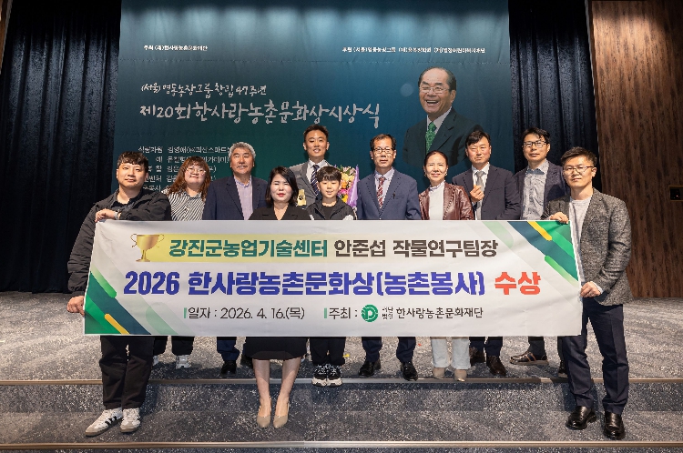 안 팀장은 “오늘의 수상은 뙤약볕 아래서 묵묵히 들녘을 지켜온 강진 농업인들이 함께 일궈낸 결실”이라며 “앞으로도 ‘모든 문제의 답은 현장에 있다’는 신념으로 농민의 눈높이에서 소통하고, 지속가능한 농촌의 미래를 만드는 데 모든 전문성을 바치겠다”고 밝혔다.
