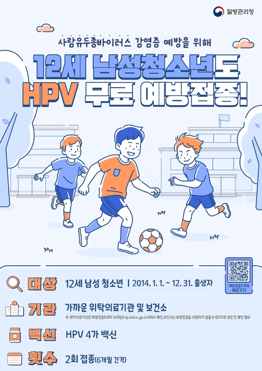 ![]() 12세 남성청소년 HPV 무료 예방접종 안내 포스터 |