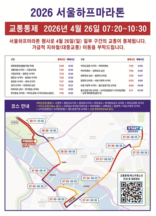 ![]() '2026 서울하프마라톤' 교통통제 안내문 |
