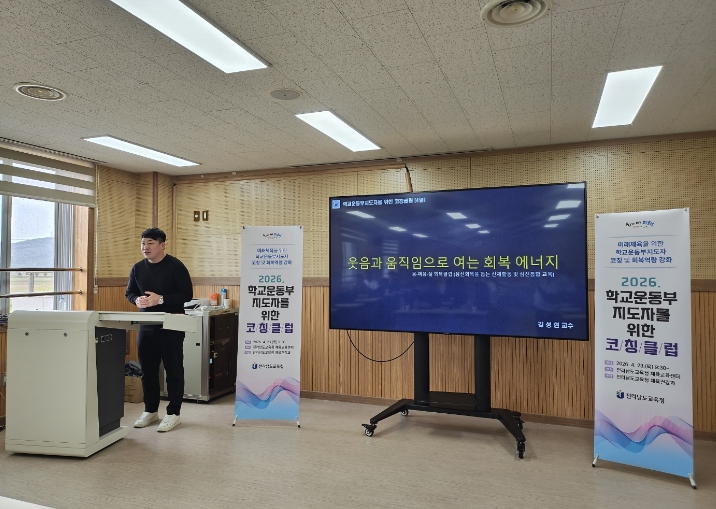 ![]() 23일 무안 전라남도교육청 체육교육센터에서 ‘2026. 학교운동부지도자를 위한 코칭클럽’이 진행되고 있다. |