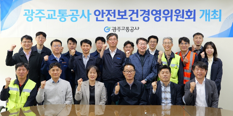 ![]() 광주교통공사는 4월 27일 용산차량기지에서 상반기 안전보건경영위원회를 개최하고 참석자들이 기념촬영을 하고 있다. |