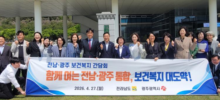 전남도와 광주시는 27일 도청 서재필실에서 두 시·도 복지국장과 과장단 등 30여 명이 참석한 가운데 ‘전남광주통합특별시 성공적 출범을 위한 보건복지부서 간담회’를 열었다.