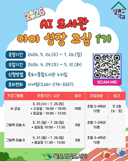 이번 사업은 전라남도목포교육지원청 주관 ‘지역사회 연계 방과후학교’ 공모사업에 선정돼 추진되며, 도서관의 교육 기능 강화와 지역 연계 모델로서 의미를 더하고 있다.