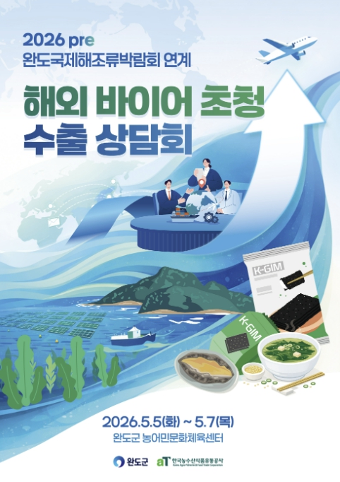 수출 상담회는 박람회가 해조류산업 발전을 위한 산업형으로 개최되는 만큼 해외시장 공략을 위해 마련됐으며, 5월 5일부터 7일까지 완도군농어민문화체육센터에서 3일간 진행된다.