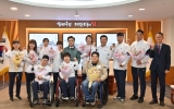스포츠 온라인뉴스팀2024. 10.15[뉴스앤저널] 김태흠 충남도지사(도장애인체육회장)는 15일 도청 외부인사접견실에서 ‘2024 파리 패럴림픽’에 참가한 도 선수단과 만나 성과를 축하하고 격려했다. 김 지사와 파리 패럴림픽 도 선수단 등 20여 명이 참석한 가운데, 이번 행사는 결과 보고, 꽃다발 전달, 환담 등의 순으로 진행했다. 지난 8월 28일부터 9월 8일까지 프랑스 파리에서 열린 패럴림픽에 도 선수단은 총 5종목 10명(골볼 2명, 보치아 4명, 사격 1명, 펜싱 2명, 카누 1명)이 출전했다. 메티스 소속 정소영 선수는 보치아(BC2 개인...