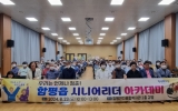 장흥 온라인뉴스팀2024. 08.23[뉴스앤저널]함평군 함평읍은 23일 함평천지종합복지관에서 이장단 및 주민자치위원, 경로당 회장·총무 등 150여 명을 대상으로 ‘우리는 언제나 청춘’이라는 슬로건 아래 ‘시니어리더 아카데미’를 개최했다고 밝혔다. 이날 행사는 군정 및 읍정 정보 전달, 시니어들의 슬기로운 생활 및 세대공감 2080 마음잇기 프로그램 등을 통해 지역 미래발전을 위한 공감대를 형성하고자 기획됐다. 주요 내용으로 ▲'찾아가는 반상회'를 통해 군의 주요 사업 등을 전달하고 ▲'슬기로운 시니어 생활'에서 키오스크 이용법과 보이스피싱 예방법, 심폐소생술 시...
