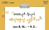 여수 온라인뉴스팀2024. 08.16[뉴스앤저널]광주 광산구는 2025년도 예산편성에 앞서 시민 목소리에 기초해 재원을 합리적으로 배분하고, 효율성을 제고하고자 9월 2일까지 ‘2025년 예산편성 관련 설문조사’를 한다고 밝혔다 설문조사는 예산편성 중점 방향, △지역경제 △보건 △복지 △교육‧청소년 △문화관광 △도시환경 △도로교통 △공공안전 등 8개 분야 중 우선해서 투자하고 예산을 편성할 분야를 선택하면 된다. 광산구에 거주하는 시민 누구나 웹자보에 있는 큐아르(QR)코드로 접속하거나, 광산구 누리집을 통해 참여할 수 있다. 조사 결과는 내년도 예산편성 시 기...