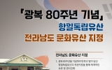 전라남도 온라인뉴스팀2025. 02.20[뉴스앤저널]전라남도가 광복 80주년을 맞아 항일독립유산을 체계적으로 보호하고 관리를 강화하기 위해 전국 광역자치단체 중 최초로 도 지정문화유산 지정을 추진한다. 이는 항일독립유산의 체계적 보호 및 활용을 위한 것이다. 해당 유산을 발굴하고 기록화하며, 지역 주민과의 협력을 강화하는 등 정신적 문화유산을 계승하는 기반을 구축할 방침이다. 특히 광복 80주년을 맞아 민족의 얼이 담긴 항일유산을 지정하고 이를 적극 홍보함으로써 도민이 역사적 자긍심을 느끼도록 할 계획이다. 이에 따라 전남도는 3월 31일까지 시군, 도민 공모를 ...