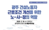 광주광역시 온라인뉴스팀2025. 02.19[뉴스앤저널]지역 건설산업의 열악한 실정을 이해하고, 건설노동자 고용 안정성을 확보하며 노사정 역할과 상생 방안을 모색하기 위한 자리가 마련됐다. 광주시의회 채은지 의원은 19일 오후 2시 광주시의회 예산결산특별위원회 회의실에서 ‘광주 건설노동자 근로조건 개선을 위한 노-사-정의 역할’을 주제로 정책토론회를 개최했다. 채은지 의원이 좌장을 맡고, 임상훈 한양대학교 경영학부 교수와 이준상 민주노총 건설노조 광주전남건설지부장이 발제했다. 임상훈 교수는 ‘건설산업 선진화를 위한 현장 생산성 연구 결과 요약 및 정책 제언’을 이준상 ...