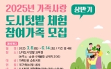 순천 온라인뉴스팀2025. 02.19[뉴스앤저널]순천시는 도심 속 자연과 함께하는 ‘가족사랑 텃밭 체험’ 참여 가족을 오는 27일까지 모집한다고 밝혔다. 이번 가족사랑 텃밭 체험 프로그램은 가족 단위 시민을 대상으로 오는 3월 8일부터 6월 14일까지 4개월간 매월 1회 토요일 진행된다. 주요 프로그램으로는 파종, 재배, 수확 및 가공까지 다양한 텃밭 체험활동을 제공하며, 이를 통해 참여 가족이 서로간 유대감을 강화할 수 있도록 할 계획이다. 또한, 역량을 갖춘 도시농업관리사들에게 체계적인 텃밭관리 요령을 배울 수 있는 기회도 제공한다. 가족사랑 텃밭체험 프로...
