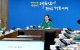 해남 온라인뉴스팀2024. 07.17[뉴스앤저널]김영록 전라남도지사는 17일 오전 재난종합상황실에서 재난 협업부서 실국장이 참석한 가운데 호우피해 복구상황 점검회의를 주재, 신속한 피해 조사 및 응급 복구, 복구 과정에서의 철저한 안전조치 등을 당부했다. 전남도에 따르면 지난 15~16일 평균 64.0mm의 비가 내렸다. 지역에 따라 광양 중동 189.9mm, 신안 홍도 182.5mm, 진도 의신 169.0mm의 강수량을 기록했다. 이에 따른 인명피해는 없었지만, 주택침수 161건, 벼 침수 279ha, 지하 주차장 침수 등 피해가 발생했다. 또 도로 토사유실 8개...