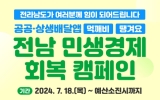 영광 온라인뉴스팀2024. 07.17[뉴스앤저널]영광군은 전라남도에서 7월 18일부터 민생경제 종합대책의 일환으로 공공배달앱 ‘먹깨비’와 상생배달앱 ‘땡겨요’에서 민생경제 회복을 위한 할인 캠페인을 실시한다고 말했다. 이번 할인캠페인은 전라남도에서 운영하고 있는 배달앱인 공공배달앱 ‘먹깨비’와 상생배달앱 ‘땡겨요’에서 매월 1인 4회, 5천원 할인쿠폰을 지급하여 소비자는 최대 2만원의 할인 혜택을 누릴 수 있다. ‘전남 공공·상생배달앱 민생경제 회복 할인캠페인’은 이미 추진 중인 할인이벤트와 중복으로 할인혜택을 받을 수 있기에, 신규 가입자의 경우 먹깨비에서는 5...