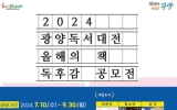 광양 온라인뉴스팀2024. 07.04[뉴스앤저널]광양시가 오는 7월 10일부터 9월 30일까지 2024 광양독서대전 ‘올해의 책’ 독후감 공모전을 개최한다고 밝혔다. 올해로 3회째를 맞는 이번 공모전은 한 권의 책을 읽고 참여하는 독서 생활화 운동인 ‘시민 한 책 읽기’ 운동의 일환으로 진행되는 사업이다. 독후감 대상 도서는 2024년 광양시 ‘올해의 책’으로 선정된 ▲김혜정 작가의 '열세 살의 걷기 클럽' ▲김선미 작가의 '비스킷' ▲최난영 작가의 '카페 네버랜드' 등 총 3권이다. 공모전은 광양시민을 대상으로 초등부, 중·고등부, 성인부 3개 부문으로 나눠 ...