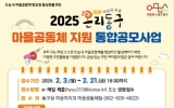 동구 온라인뉴스팀2025. 02.14[뉴스앤저널]광주 동구는 마을 문제를 주민이 주도적으로 해결하는 지속가능한 마을공동체를 조성하기 위해 ‘2025년 온리동구 마을공동체 지원 통합공모사업’에 참여할 공동체를 오는 21일까지 모집한다고 밝혔다. 이번 사업은 마을자치과, 인문도시정책과, 양성평등아동과, 건강정책과 4개 부서에서 진행된다. 공동체 중복 선정을 방지하고, 심사과정을 통합해 효율적이고 투명한 공모사업 운영을 목표로 한다. 마을자치과에서는 ▲마을공동체 형성 ▲마을총회 의제 ▲자율의제 ▲소통방 ▲마을사랑채 특화 ▲마을사랑채 활성화 등 총 6개 분야로 진행된다...