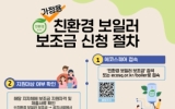 광주광역시 온라인뉴스팀2025. 02.13[뉴스앤저널]광주광역시가 올해 저소득층‧취약계층 등을 대상으로 ‘가정용 친환경 보일러 설치 지원 사업’을 추진한다. 미세먼지와 온실가스 감축 등 대기환경 개선사업의 하나로, 8억4000만원을 투입해 친환경 보일러 1400대의 교체 비용(각 60만원)을 지원할 계획이다. 친환경 보일러는 일반 노후보일러 대비 대기오염물질의 주범인 질소산화물(NOx) 발생량이 8배 낮고 에너지 효율은 12% 높아 난방비를 연간 최대 44만원 가량 절약하는 효과가 있다. 보조금이 지원되는 친환경 보일러는 한국환경산업기술원의 환경표지 인증을 받은 제품...
