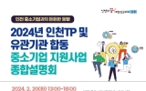 정치메인 최준규 기자2024. 02.15[뉴스킹]인천테크노파크(인천TP)는 오는 20일 오후 1시부터 송도국제도시 갯벌타워 2층 국제회의장에서 ‘2024년 인천 중소기업 지원사업 종합설명회’를 개최한다고 밝혔다. 이날 설명회에는 인천TP 뿐만 아니라 ▲인천창조경제혁신센터 ▲인천상공회의소 지식재산센터 ▲기술보증기금 인천지역본부 등 유관기관이 함께 참여해 기관별 지원사업을 소개한다. 또한 참가자들에게 지원사업 연간 일정표 및 가이드북을 제공하고, 개별 상담 부스를 통해 지원사업 관련 궁금증을 현장에서 바로 해소할 수 있다. 인천TP는 이날 설명회에서 ▲경영자금 ▲컨설팅...