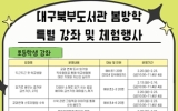 대통령실 최준규 기자2024. 02.13[뉴스킹]대구북부도서관은 2월 봄방학 기간 동안 초등학생, 학부모 등을 대상으로 도서관에서 유익한 교육과 체험을 경험할 수 있도록 8개 강좌 및 체험행사를 2월 13일부터 29일까지 다채롭게 운영한다. 초등학생 대상으로는 13일부터 23일까지 4개의 프로그램을 운영한다. ▲예비초등학생을 위해 교과수록 그림책을 읽고 책에 대한 흥미와 학교생활을 엿볼 수 있는 두근두근 첫 학교생활, ▲2~3학년을 위해 다양한 소재로 일기 쓰는 법을 배우며 글쓰기의 재미를 느낄 수 있는 일기로 배우는 즐거운 글쓰기, ▲4~6학년을 위해 수학 관련 ...