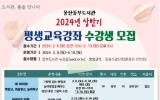 대통령실 최준규 기자2024. 02.07[뉴스킹] 울산동부도서관(관장 김숙현)은 오는 3월부터 5월 18일까지 상반기 평생교육강좌를 운영한다. 지난해 동부도서관 평생교육강좌는 상‧하반기 18개 강좌에 1,410명의 학생과 지역주민이 참여하는 등 높은 만족도를 보였다. 이번 상반기에는 초등학생과 학부모 등 성인 대상 112명 정원의 8개 강좌를 마련했다. 초등학생 대상으로는 체험형 영어 동화 수업, 진로 미술 수업 등 4개의 강좌가 매주 토요일 진행된다. 중장년층을 위한 재무 설계, 기초 코딩을 배울 수 있는 강좌 등 성인 대상 강좌 4개도 운영...