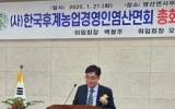 영광 온라인뉴스팀2025. 01.22[뉴스앤저널]염산 한국후계농업경영회는 21일 염산면사무소 3층 회의실에서 연합회 회원과 내빈 등 50여 명이 참석한 가운데 제33 ・34대 회장단 이 ・취임식을 가졌다. 이날 행사에서는 지난 2023년부터 2년간 염산면회를 이끌어 온 백철주 회장이 이임하고 새롭게 선출된 오상호 회장이 취임했으며, 부회장에는 임준채, 사무국장에는 나광진 회원이 임명됐다. 한편 염산 한국후계농업경영인회는 회원 상호간 영농기술 정보를 교환하고 후배들을 지도 육성하여 지역 농업발전과 농업인의 권익 향상에 큰 역할을 하고 있다. 오상호 신임회장은...
