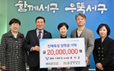 서구 최준규 기자2024. 01.08[뉴스킹]새해를 맞아 (재)광주광역시서구장학재단(이사장 박찬갑)에 지역 인재 육성을 위한 장학금 기탁이 줄을 잇고 있다. 8일 광주 YWCA 제30대 정지운회장이 2000만원을 기탁한 것을 비롯해 한국자산관리공사 광주전남지역본부(본부장 김용훈) 500만원, 동천·유덕 기업교류협의회(회장 김용호) 500만원 및 회원사 9개 기업(㈜신광씨링, 동양강철 광주총판, ㈜리오통상, ㈜오케이철물, ㈜동영산업, ㈜유명기업, ㈜태목종합건설, ㈜중원큐비클, ㈜우수건설기계)에서 총 1250만원을 서구 장학재단에 기탁했다. 특히 동천·유덕 기업교류...