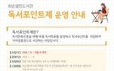 화순 최준규 기자2024. 01.03[뉴스킹]화순군은 화순열린도서관에서 2024년 한 해 동안 독서 목표를 달성하면 지역 상품권을 지급하는 “2024년 화순열린도서관 독서점수제(독서포인트제)”를 운영한다고 밝혔다. 작년 6월 관련 조례를 제정하고 시범 운영을 거쳐 올해 정식 운영되는 독서점수제는 지역주민들에게 독서에 대한 동기를 부여하고, 독서문화를 확산시키기 위한 사업으로 매월 독서 목표(초등학생 5권, 중학생 이상 2권) 달성과 함께 화순열린도서관 누리집에 독후감을 등록하면, 매월 5,000점을 적립하고 점수를 정산하여 화순사랑상품권을 지급한다. 참가자는 1월...