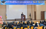 정치일반 최준규 기자2024. 01.02[뉴스킹]제주도교육청 제주제일중학교부설방송통신중학교는 12월 30일 10시 본교 한얼관(학교 체육관)에서 제6회 졸업식을 열었다. 제주특별자치도교육청 김광수 교육감님을 비롯한 교육청 관계자 분들이 참석하여 졸업생의 앞날을 응원하고 졸업을 축하하는 훈훈한 졸업식이 됐다. 윤철훈 교장은 회고사에서“졸업은 하나의 마침인 동시에 새로운 시작을 의미하므로 계속하여 배움의 꿈을 키워 가시길 바란다”라는 축하와 격려의 메시지를 전했다. 뜨거운 열정으로 배움에 도전한 3학년 34명, 조기졸업 2명을 포함한 36명이 빛나는 중학교 졸업장...