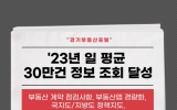 의회 최준규 기자2024. 01.02[뉴스킹]경기도의 부동산 정보 누리집 ‘경기부동산포털’의 2023년 조회수가 2022년에 이어 2년 연속 1억 건을 넘은 것으로 나타났다. 2일 경기도에 따르면 지난해 경기부동산포털(gris.gg.go.kr)의 조회수는 1억 300만여 건으로 2022년 1억 1천500만 건에 이어 두 번째로 1억 건을 넘었다. 도는 지난해 이용자들의 편의개선을 위해 10개의 신규 콘텐츠 개발과 4건의 기능개선을 진행했다고 설명했다. 신규 콘텐츠는 ▲주소정보시설 안전신문고 구축 ▲행정구역(통반) 지도 구축 ▲2022년 항공사진 갱신 ▲경기부...