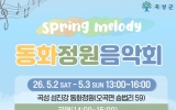 스포츠 민슬기 기자2026. 04.08[뉴스앤저널]전남 곡성군은 오는 5월 2일부터 5월 3일까지 2일간 곡성읍 묘천리 일원에 조성된 동화정원에서 ‘봄의 멜로디’ 음악회를 개최한다고 8일 밝혔다. 이번 음악회는 오후 1시부터 4시까지 진행되며 봄의 정취가 가득한 정원 속에서 음악과 체험, 휴식을 함께 즐길 수 있는 복합문화 프로그램으로 운영된다. 동화정원은 지난해 가을 황화코스모스가 장관을 이루며 인생사진 명소로 떠오른 곳으로, SNS를 통한 자발적 홍보로 많은 관광객의 발길을 이끌었다. 올 봄에는 초록빛 밀밭을 비롯해 수레국화, 양귀비, 안개꽃 등이 어우러져 ...
