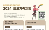 대통령실 최준규 기자2024. 01.01[뉴스킹]충청북도교육청 직속기관 유아교육진흥원이 '2024년 토요가족 체험' 참여 가족을 모집한다. 충북 도내에 거주하는 3~5세 유아 및 보호자를 대상으로 운영하는 토요가족 체험활동은 매월 2․4주 토요일에 운영하며 공휴일에는 미운영한다. 누리집을 통해 보호자가 개인이 신청을 하며 유아 1인당 연 3회까지 신청이 가능하다. 신청기간은 체험일 2주전 월요일부터 금요일까지이며, 대기자 신청기간은 체험주간 주의 수요일까지 가능하다. 체험가능한 유아의 출생년도는 1, 2월은 2017년생부터 2020년 2월 말일까지 태어난 유아이고...