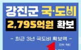 강진 온라인뉴스팀2025. 01.13[뉴스앤저널]강진군은 2024년 한 해 동안 공모사업 62건, 건의사업 3건 등 국·도비 총 2,795억 원을 확보했다고 밝혔다. 2022년 1,233억 원, 2303년 1,711억 원, 2024년 2,795억 원의 국·도비를 확보하며 3년간 상승곡선을 그리고 있다. 이는 전년대비 63%나 증가해 지역현안 해결은 물론 지역경제 활성화에 힘을 불어넣고 있다. 이렇게 더 많은 예산을 확보할 수 있었던 배경에는 3선의 노련함을 지닌 강진원 군수의 선구안과 지방소멸위기에 처한 지역의 명운이 걸린 간절함, 여기에 지역 국회의원인 ...