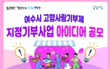 화순 온라인뉴스팀2025. 01.06[뉴스앤저널]여수시는 고향사랑기부제를 통해 모인 기부금을 가치 있게 활용하고자 오는 31일까지 ‘고향사랑기부제 지정기부사업 아이디어 공모전’을 진행한다. 공모 분야는 ▲사회적 취약계층의 지원 및 청소년 육성·보호 ▲주민 문화·예술·보건 증진 ▲시민참여, 자원봉사 등 지역공동체 활성화 ▲주민 복리 증진에 필요한 사업 등이다. 주소지와 관계없이 누구나 참여할 수 있으며, 아이디어 제안서를 작성해 시청 징수과에 방문하거나 우편, 전자우편으로 제출하면 된다. 시는 접수된 아이디어를 심사기준에 따라 최종 선정하고 오는 3월 중 시 누리...